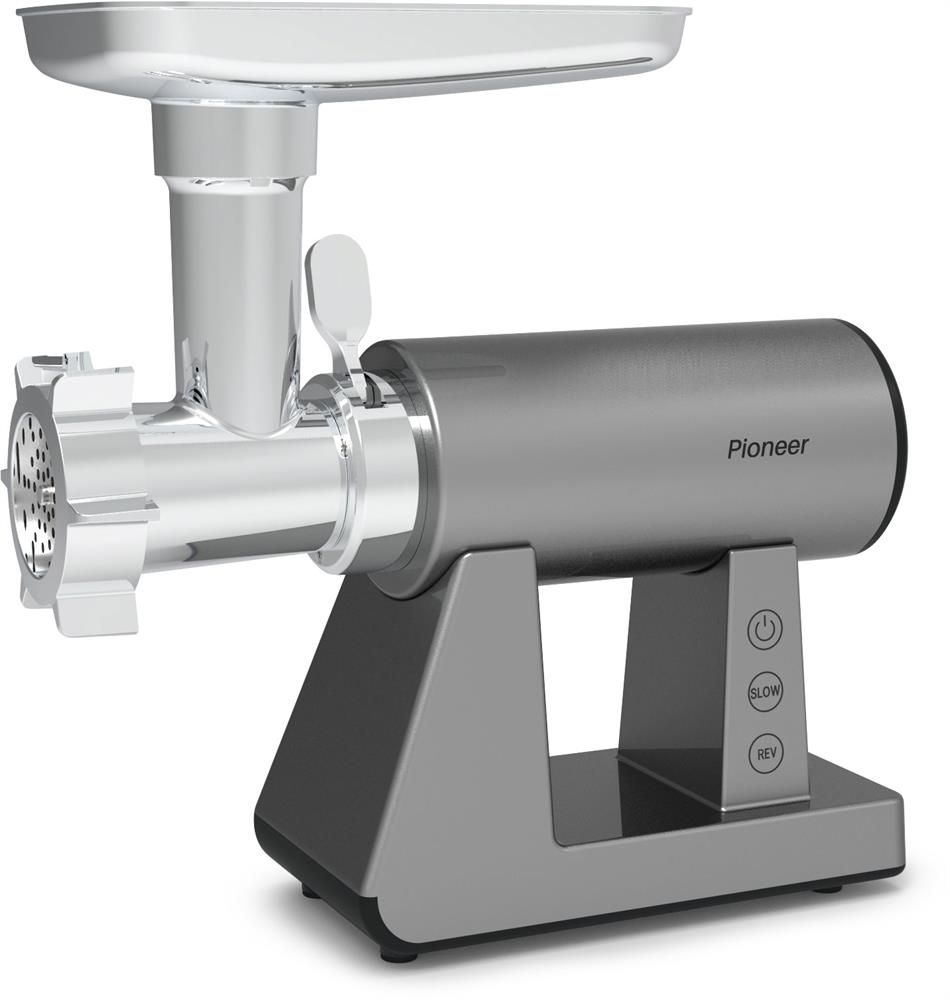 Профессиональная электрическая мясорубка, Максимальная мощность 2700 Вт, Электродвигатель постоянного тока, DC, Высокая производительность до 2.7 кг. мяса в минуту, Сенсорное управление, Металлическое соединение шнека с редуктором, 2 скорости работы для эффективной обработки разных продуктов, Функция реверса, Нож из высококачественной стали, 3 решетки из высококачественной стали в комплекте: 4 мм, 7 мм, подрезная, Насадки для формирования колбасок разного размера 142022 мм и кеббе Профессиональный алюминиевый замок головки мясорубки, (Легкое снятие шнекового блока) Толкатель для продуктов, Металлический лоток, Пластиковый корпус, Противоскользящие резиновые ножки-присоски, Двойная защита двигателя, Длина шнура 1 м