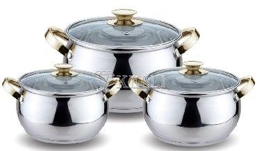Набор из 6 предметов; Кастрюля с жаропрочной стеклянной крышкой, 2.1л; Кастрюля с жаропрочной стеклянной крышкой, 3л; Кастрюля с жаропрочной стеклянной крышкой, 4л; Высококачественная нержавеющая сталь 18/10; 5-ти слойное капсульное дно; Подходит для всех видов плит, включая индукционные.