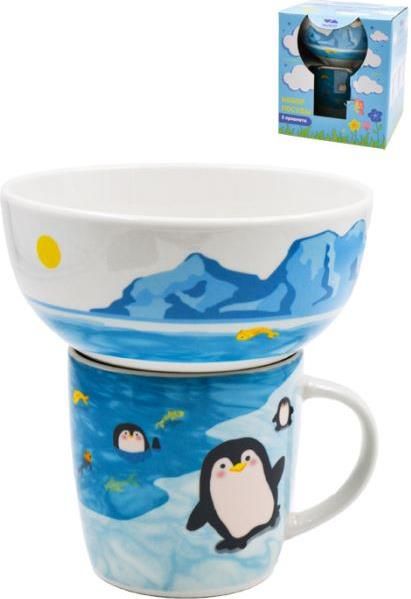 Набор посуды 2 предмета "Пингвинчики".Салатник 12,5см ( 5") - 1 шт, Кружка 270мл - 1 шт, фарфор