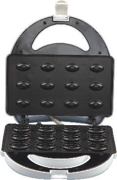 Мощность 750 Вт Рабочее напряжение 220 В Частота сети питания 50 Гц 12 полуформ в форме орешков Автоматический контроль температур Теплоизолированный корпус Антипригарное покрытие панелей Индикатор нагрева Индикатор готовности к работе Возможность вертикального хранения прибора Размер прибора 232х91х204 мм Размеры прибора в упаковке: 252х112х246 мм
