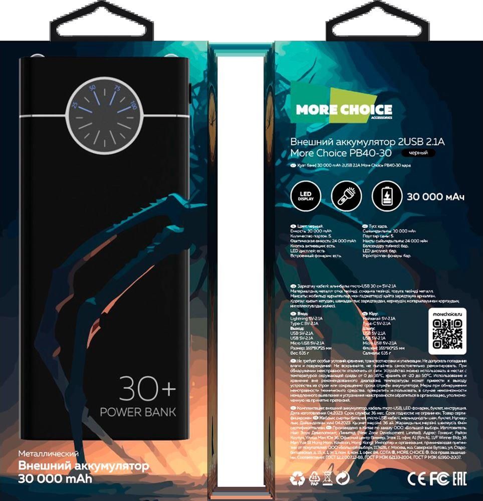 Читать все статьиПовербанк MORE CHOICE (4610196406768) PB40-30 - 30000mAh Black