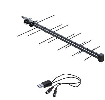 Наружная диапазонная антенна, активная, для ДМВ и DVB-T/T2, используется в зонах уверенного приёма, коэффициент усиления, макс., дБи, 21-69 канал: 32, сопротивление 75 Ом, напряжение питания - 5Вт, подключается к порту USB телевизора или блоку питания с USB выходом через входящий в комплект поставки инжектор, корпус антенны защищен от неблагоприятных атмосферных осадков специальным полимерным покрытием.