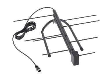 Телевизионная комнатная антенна, активная, для приема аналогового и цифрового телевидения, коэффициент усиления, макс., дБи, 21-69 канал: 17, волновое сопротивление, Ом: 75, питание осуществляется напрямую от антенного разъема цифрового приемника (ресивера), напряжение питания, В: 5, размеры в сборе, мм: 270х350х107.