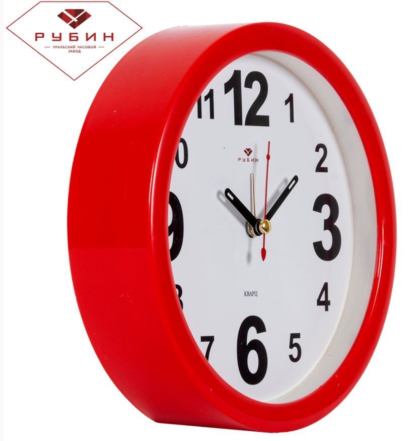В4-002 (20) Будильник кварц d=15см, корпус красный "Классика" С дискретным ходом Пластмасса, стекло, металл