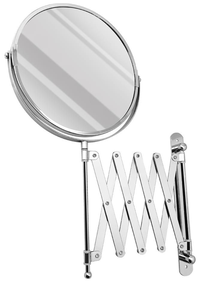 Зеркало настенное, косметическое, раздвижное, двустороннее, с увеличительным эффектом. Изготовлено из прочной нержавеющей стали с хромированным покрытием, которое придает безупречный стильный вид и долговечность. Хромированное покрытие очень стойко переносит истирания и обеспечивает зеркальный блеск изделия. Установлено на металлический хромированный держатель, позволяющий поворачиваться вокруг своей оси и регулировать угол наклона модели. Снабжено механизмом «гармошка», которое позволяет зеркалу выдвигаться на требуемое расстояние и компактно складываться. Одна из сторон зеркала имеет 3х-кратное увеличение удобное для косметических процедур, нанесения макияжа и бритья. Монтируется к стене при помощи крепления, входящего в комплект. Габаритные размеры: диаметр 190 мм. высота 340 мм, длина от 100 до 600 мм. Вес - 1,000 кг, объём - 0,00320 м3.