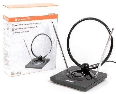 Антенна комнатная DVB-T2 и ДМВ+МВ активная Сигнал SAI 963 усы 1м кабель 3м, с рег. Телевизионная комнатная антенна "Сигнал" SAI-963 для просмотра цифрового и аналогового телевидения выполнена из пластика. Данную антенну можно разместить в наиболее удобном месте в зависимости от уровня сигнала, потому как SAI-963 имеет удлиненные усы 100 сантиметров и кабель длиною 3 метра. Преимуществом так же является наличие у данной антенны регулировки уровня сигнала, что позволяет усилить сигнал в зоне неуверенного приема, или уменьшить сигнал при появлении помех. Есть возможность изменения угла наклона. Принимает сигнал в диапазонах МВ и ДМВ, DVB-T, DVB-T2. Частота приема сигнала МВ (87,5-230) MHz / ДМВ (470-862) MHz. Антенна по типу усиления активная. Имеет встроенный усилитель, поэтому обладает отличным приемом сигнала, как в горизонтальной, так и в вертикальной плоскости. Коэффициент усиления составляет 15-30dB. Питание от блока питания 12v, размер антенны 215х185х150мм.