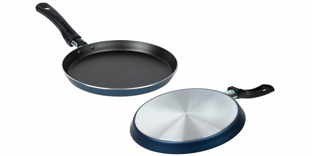 Практичная легкая сковорода для блинов с антипригарным покрытием 22 см – надежная посуда на каждый день с превосходными техническими характеристиками. Корпус из пищевого алюминия толщиной 2,4 мм, удобные низкие бортики, эргономичная бакелитовая ручка – каждая деталь рассчитана на комфортное интенсивное использование дома и на даче, на газовой, электрической или керамической плите. Европейское антипригарное покрытие превосходно защищает блинчики от пригорания и прилипания даже с небольшим количеством масла.