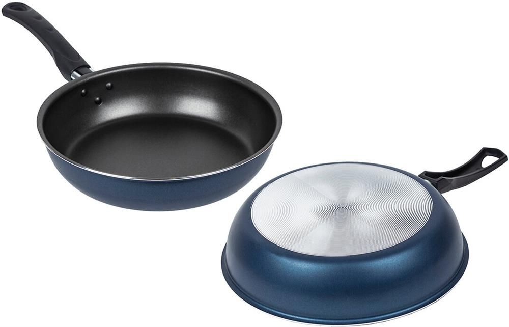 Сковорода Сатин диаметром 20 см со стеклянной крышкой простая, легкая и надежная посуда на каждый день. Европейское антипригарное покрытие внутри надежно защищает еду от пригорания, внешний слой декоративного покрытия также имеет антипригарные свойства, легко моется и долго сохраняет аккуратный вид и насыщенный синий цвет. Прочный корпус из штампованного алюминия с эргономичной бакелитовой ручкой делает использование сковороды удобным и безопасным.