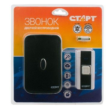 36 мелодий на выбор. Влагозащищенная кнопка. Светодиодный индикатор. Радиус действия - 100 м на открытом пространстве. 3 уровня громкости. Громкость 65-85 дБ. Питание динамика от 3 батареек ААА (3х1,5В) (не в комплекте). Питание кнопки от батарейки А23 (12 В) (в комплекте). Матеариал - ударопрочный пластик.