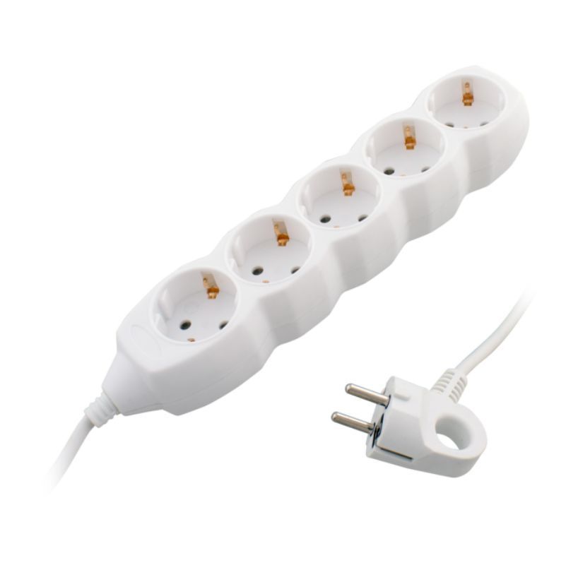 Колодка на 5 розеток Длина провода 5 м. Провод ПВС с сечением 3х0,75 мм2. Заземление Макс нагрузка 2200 Вт Сила тока 10 А Эргономичная вилка Материал - негорючий, ударопрочный РР-пластик. Корпус неразборный. Цвет-белый