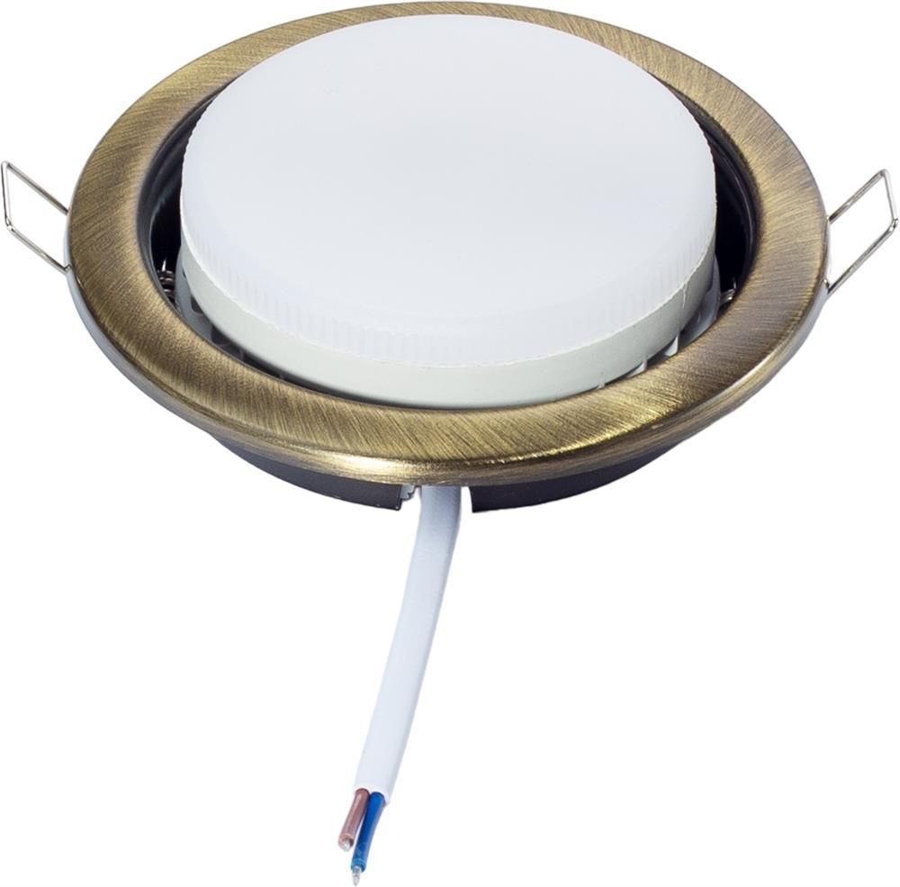 Устройство подходит для всех типов потолков, в том числе и натяжных. Встраиваемый светильник имеет минимальную установочную высоту. Монтаж устройства выполняется быстро и просто. Светильник оживляет любое пространство и создает атмосферу уюта. Размеры: 106х36мм Патрон: GX53 Цвет: Бронза Способ монтажа: Встраиваемый Монтажное отверстие: 85 мм Лампа в комплект не входит. Максимальная мощность лампы 15,5 Вт Длина медного провода: 10 см