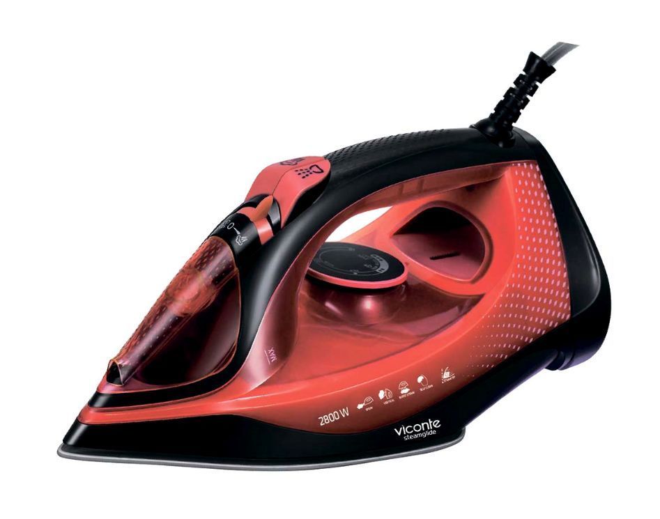 Утюг Viconte VC-4316 мощность 2800 Вт, Утюг, мощность 2800 Вт, керамическая подошва, вертикальная подача пара, паровой удар до 140 г/мин, сухое глажение, терморегулятор, функция самоочистки, возможность регулировки степени отпаривания, мощный разбрызгиватель, индикатор нагрева утюга, резервуар для воды – 360 мл, стаканчик для наполнения водой.