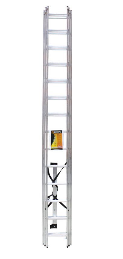 Трёхсекционная алюминиевая лестница Вихрь ЛА 3х14 73/5/1/29 предназначена для выполнения различных работ на высоте до 10.86 метров. Модель выполнена из алюминия и имеет антикоррозийное покрытие, что гарантирует надежность и долгий срок службы. Широкая поперечная траверса обеспечивает устойчивость стремянки и безопасную работу. Для предотвращения скольжения по поверхности на стойках и траверсе предусмотрены пластиковые наконечники. Тип трехсекционная. Материал алюминий. Рабочая высота, м 10,86. Max рабочая нагрузка, кг 150. Общая длина, м 9,9. Min длина, м 3,98. Max длина, м 9,9. Ширина лестницы, мм 460. Количество ступеней, шт 3х14. min длина в сложенном состоянии, м 3.98.