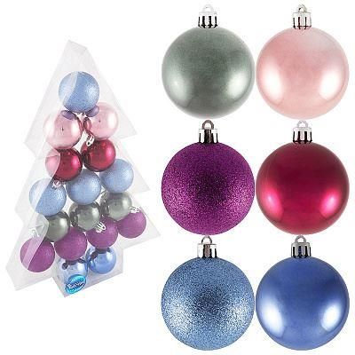 Набор шаров кол-во: 17 шт размер: 6 см цвет как на фото материал: пластмасса, полиэстер упаковка: ПВХ- коробка в форме елки