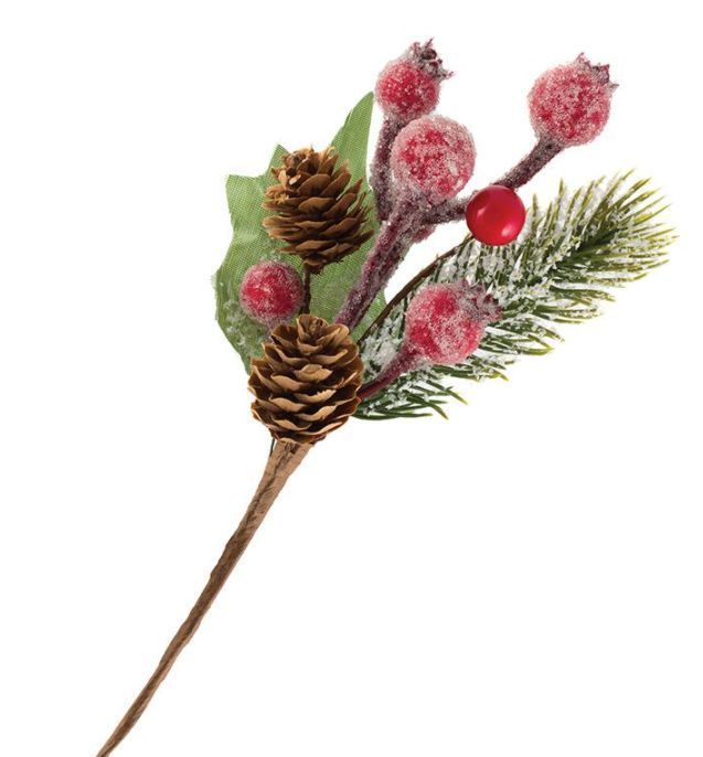 Украшение декоративное "Веточка". материал: пвх, пластмасса, бумага, пена, шишка. размер: длина 21см. упаковка: пакет+бирка.