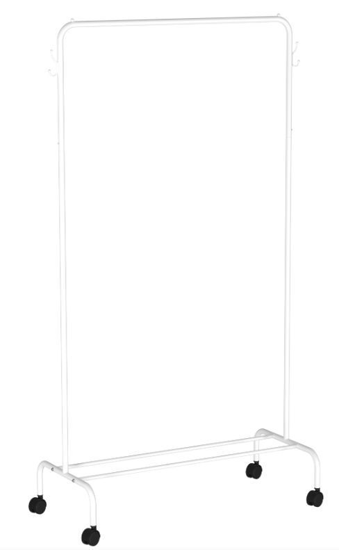 Отличительные особенности: - Пластиковые заглушки. - Вместимость до 15 плечиков. - Полка для размещения обуви. - допустимая нагрузка до 20 кг. Материал Труба диаметром 18 мм, труба диаметром 12 мм; стальные шарики; полимерно-порошковое покрытие. Габариты (Д*Ш*В) 90х39х155 см.